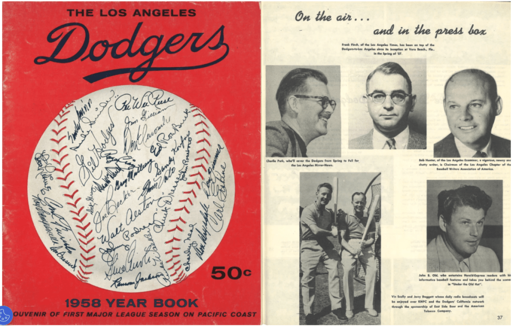 The call can be heard in this YouTube clip that preserves Side 1 of the LP: “Dodgers ’59: The Season’s Most Thrilling Moments As Reported on KMPC By Vin Scully.” It was the Dodgers one and only season on KMPC-AM (710), owned by Gene Autry.