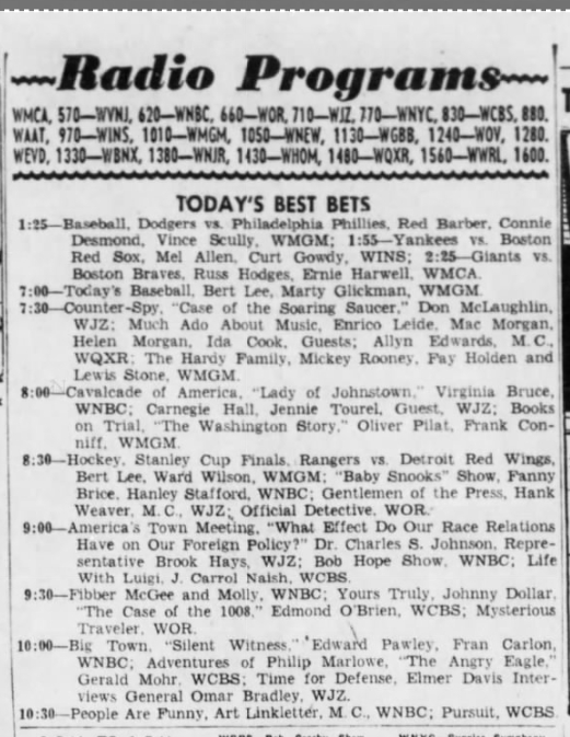 == April 18, 1950: The Brooklyn Eagle newspaper lists the first Dodgers’ broadcast for Vin Scully — calling him “Vince”: