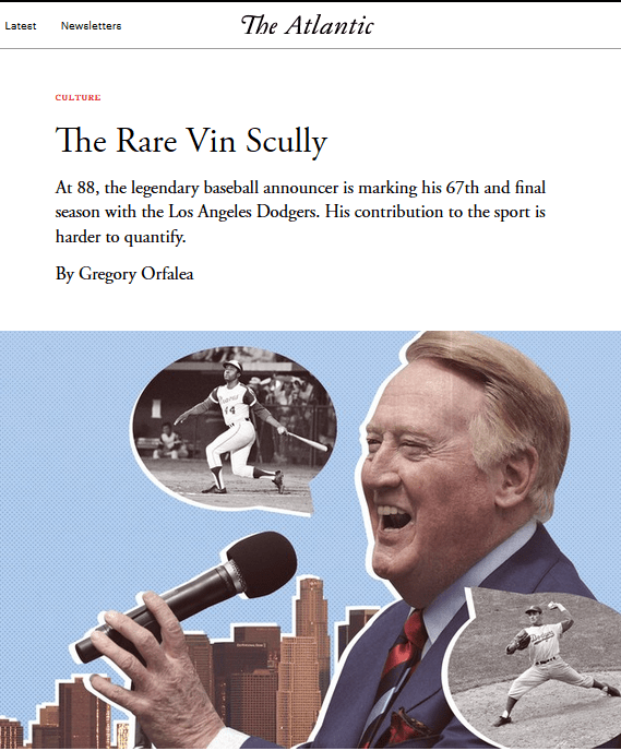 == August, 2022: For the website WalterOMalley.com, Brent Shyer has a piece posted titled “Vin Scully: The Greatest Ever.”