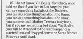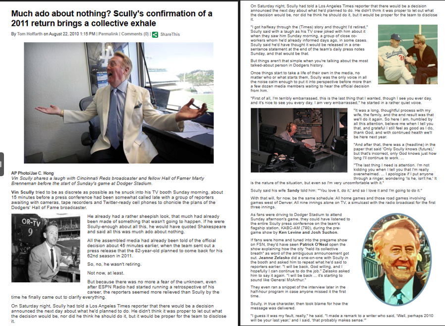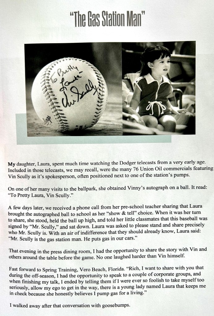 = Sept. 23, 2016: The letter distributed to Dodger Stadium fans as composed by Vin Scully, with a story about it in the Los Angeles Times: