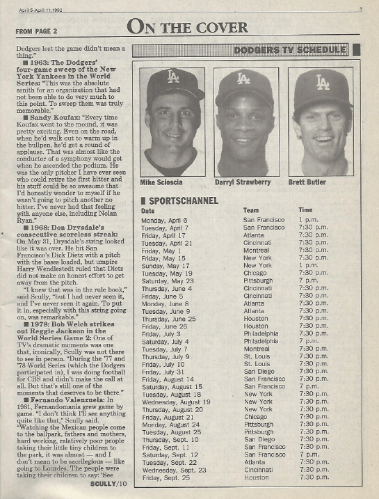 “I give a lot of credit to Vin Scully, the announcer for the Dodgers. … It was the ’63 World Series, and I got caught up in inning two and listened to the entire game, (Sandy) Koufax striking out 15. And by the time spring training rolled around in ’64, I had the magazines, I knew the players, I was collecting cards. I went to my first major league game in ’64 and the rest is history with me.”