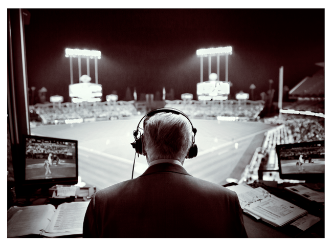 But weeks later, Vecsey followed up on his GeorgeVecsey.com website with more background on a story about a photographer who captured what he thought was one of the classiest photos of Scully doing his work in the broadcast booth, titled: “What Scully Saw; What the Photographer Saw.“