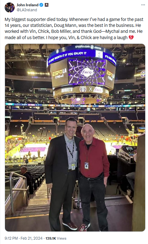 The exceptional Los Angeles sports statistician was a man of numbers, and he contributed a great number of words in an essay about the years he worked with Vin Scully on Dodgers games — explaining their friendship, their conversations, gifts exchanged, mutual respect. So much so, it became an intense, but joyful, give-and-take about how his essay could be reworded, tightened up and still have the same impact. John Ireland, who also contributed an essay to the book, took time on his ESPN AM-710 radio show to talk about Doug’s life and work after his passing.