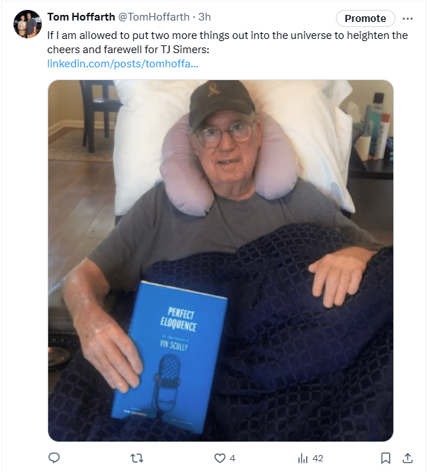 When I asked TJ for an essay, I may have thought it would be closer to the one he did about Vin in March of 2013, called“Vin Scully prompts memories of someone dear.”