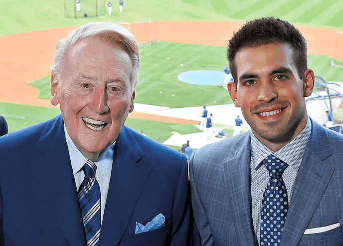 Kevin O’Malley with Vin Scully.